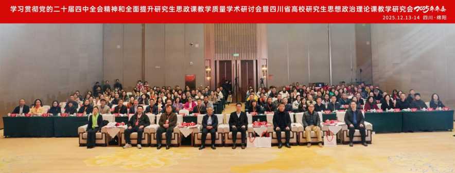 12月14日,学习贯彻党的二十届四中全会精神和全面提升研究生思政课教学质量学术研讨会暨四川省高校研究生思想政治理论课教学研究会2025年年会在绵阳师范学院举行。会议由中共四川省委教育工委、四川省教育厅指导,绵阳师范学院、四川省高校研究生思想政治理论课教学研究会和全国高校思政课“手拉手”集体备课中心联合主办。来自全国6个省46家单位的200余名领导、专家以及各兄弟院校马克思主义学院院长、知名学者、青年教师和博硕本学生,《时事报告》杂志社四川服务中心主任邓晓菊参加了本次大会。会议由学校副校长何云晓教授主持。